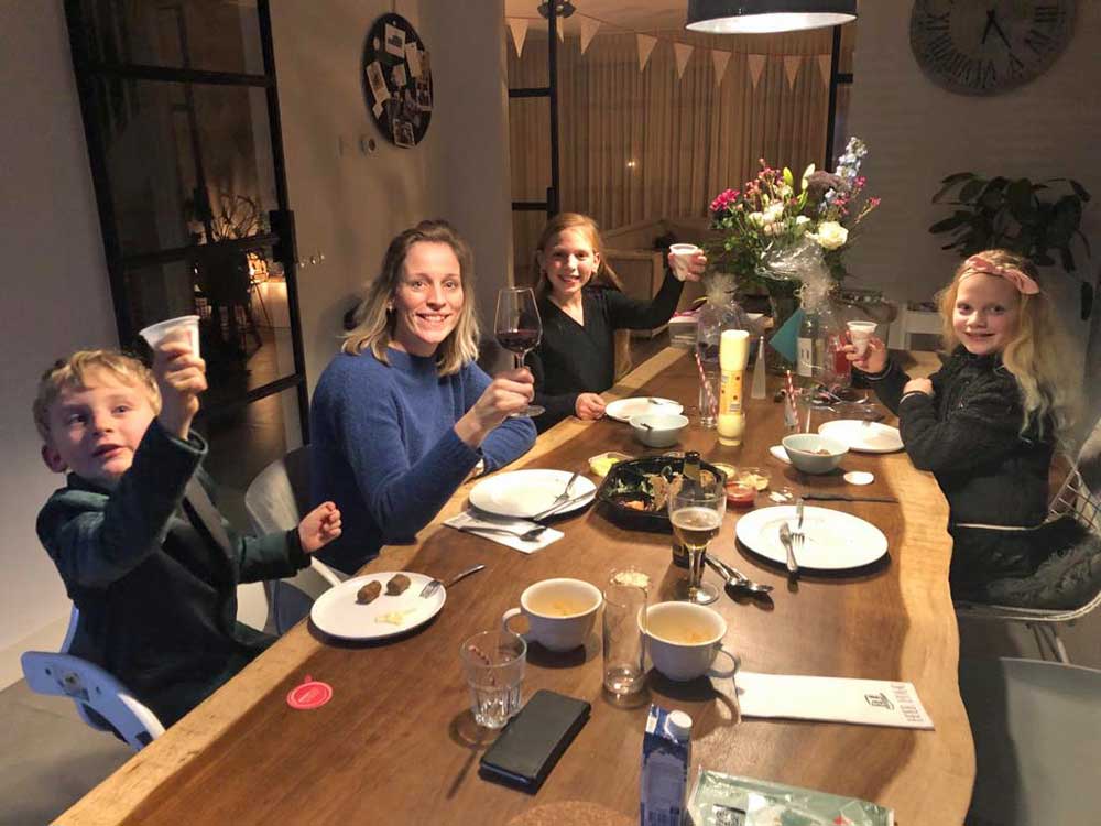 Nog even een mooi plaatje uit Obdam, Kai, Puck en Semm die proosten op hun jarige moeder Bianca.