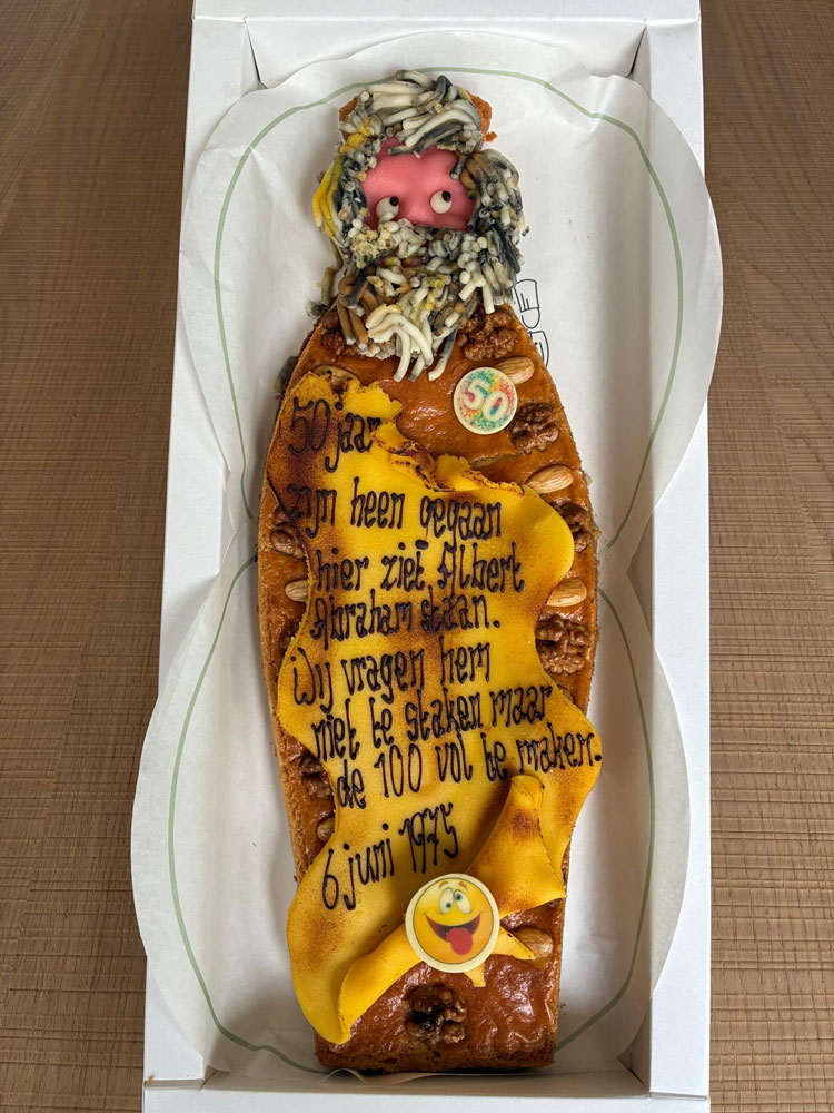 En uiteraard werd Abraham Albert Termes er thuis ook even aan herinnerd en natuurlijk een toepasselijke Abrahamtaart