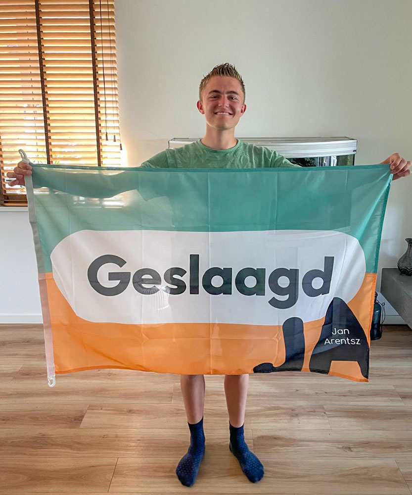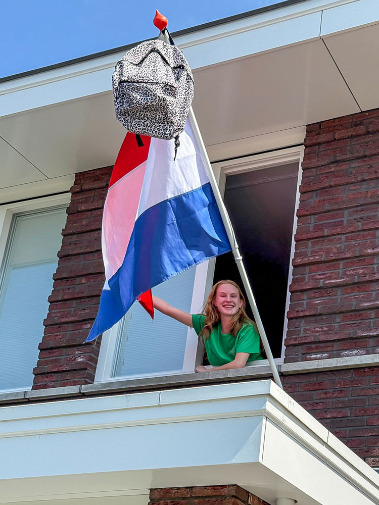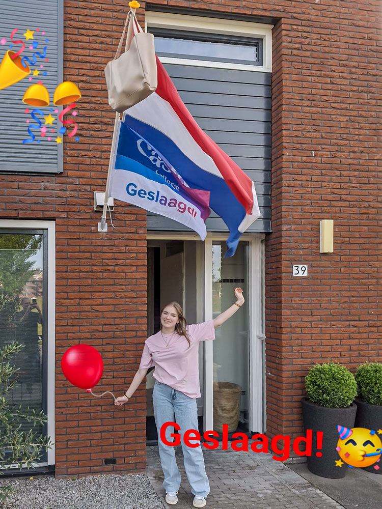 Vorige week geslaagd voor haar rijbewijs en vandaag mag de vlag weer uit, want Roos Out is geslaagd voor haar VWO-diploma (atheneum). Ze wilden criminologie doen maar werd niet ingeloot nu gaat zij de opleiding rechtsgeleerheid doen aan UVA in Amsterdam.