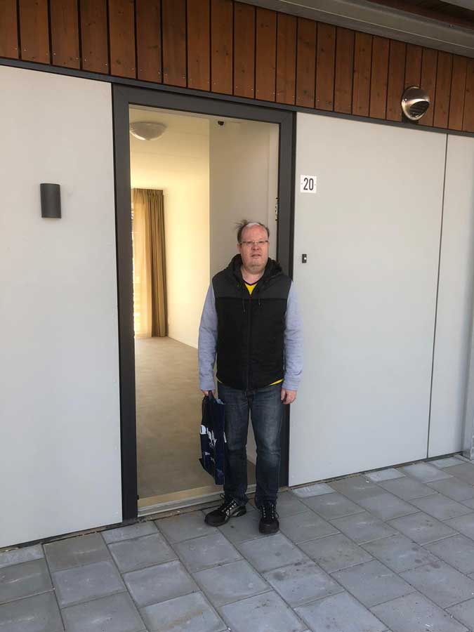 Frank de Reus heeft gisteren de sleutel ontvangen van zijn nieuwe tijdelijke woning, het is een prefab 3-kamerwoningen en bestaat uit drie woonlagen. Dit is omdat de flat waarin hij woonde gesloopt gaat worden en hier een nieuw gebouw voor terug gaat komen. Na uitleg door Woon op Maat kan met de verhuizing worden begonnen.