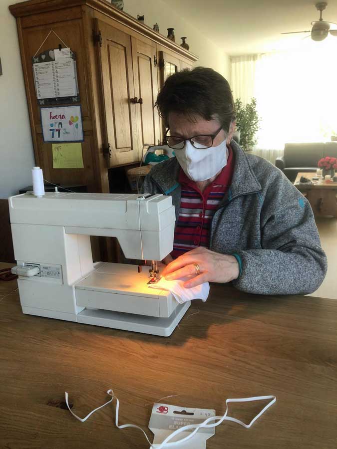 Gré de Reus probeert haar tijd wat nuttig te besteden door alvast, mocht het nodig zijn, wat mondkapjes te maken volgens een omschrijving en een patroon wat in Libelle stond.