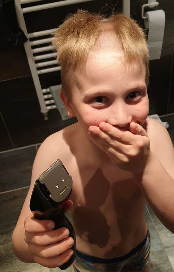 In het "Corona tijdperk" waarbij je niet naar kapper mag moet je oppassen waar je de tondeuse neerleg. Lynk van der Heide dacht het zelf wel even te doen maar dat ging niet helemaal goed en dus moest alles er maar af.