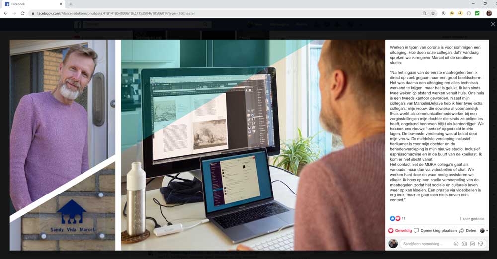 Thuis werken is het devies, hier een leuk facebook bericht van Marcel Termes over zijn thuiswerkplek.