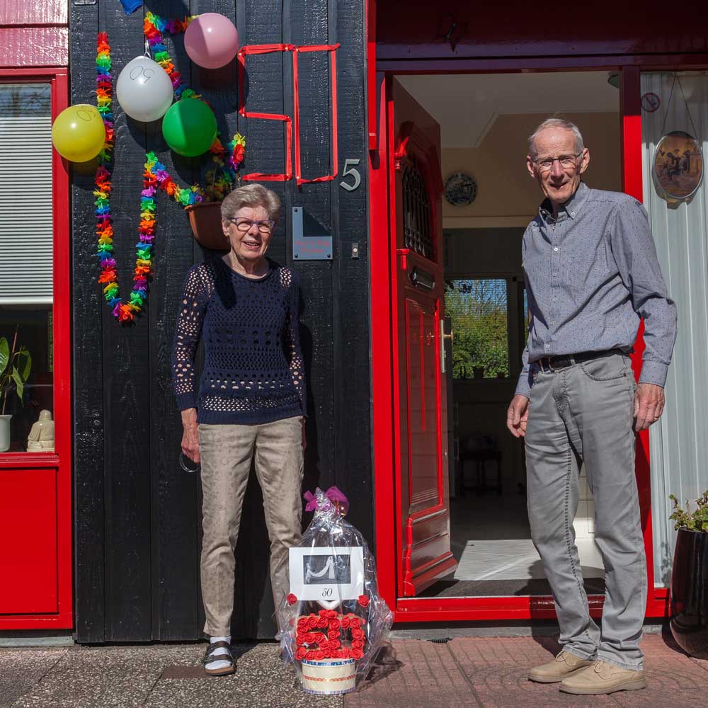Vandaag hebben Tiny en Piet Termes ondanks alle beperkingen toch genoten van hun 50 jarig huwelijksfeest. Eerst werden ze verrast met een ontbijt van kleinkinderen Niels en Inge, daarna kwamen Jolanda en Nico een cadeau namens de famie Lute brengen. Eind van de dag kwamen de kinderen en kleinkinderen nog even langs uiteraard werd de 1,50 meter in acht genomen en sluiten af met een mooi plaatje van Marcel en dochter Vida.