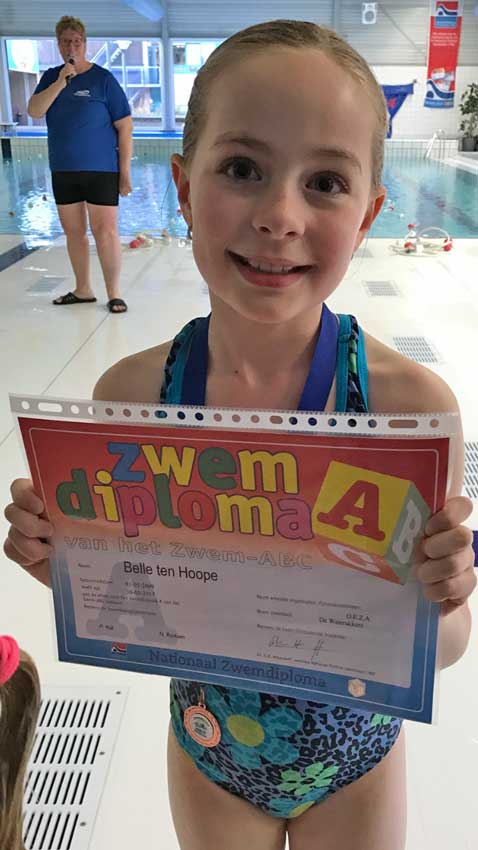Gisteren is Belle ten Hoope geslaagd voor haar zwemdiploma A.