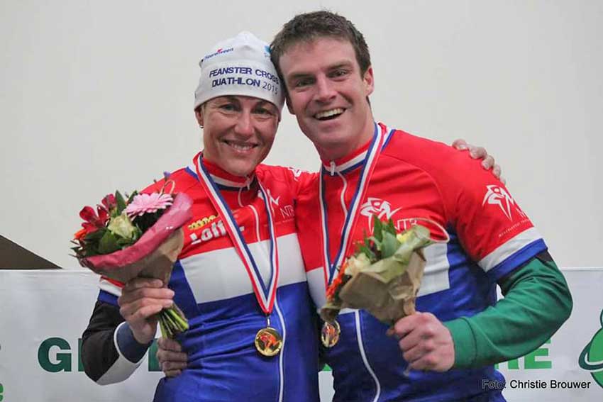 Eline Lute heeft gisteren voor een huzarenstukje gezorgd door wederom Nederlands Kampioen Wintertriathlon te worden ondanks een door allerlei redenen mindere voorbereiding. Na 10 km hardlopen (44:35) gevolgd door 50 km fietsen (1:20:19) en als afsluiting 20 km schaatsen (36:03) was Eline uiteindelijk 1:19 minuut sneller dan de tweede dame. Natuurlijk even op de foto met de kampioen bij mannen.