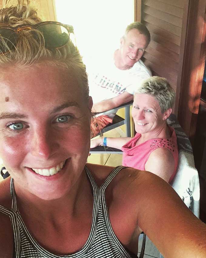 Nicky Nooij stond deze week wel heel vreemd te kijken toen zomaar als verrassing haar moeder Karin en vader Marcel Nooij voor haar neus stonden in Curacao.