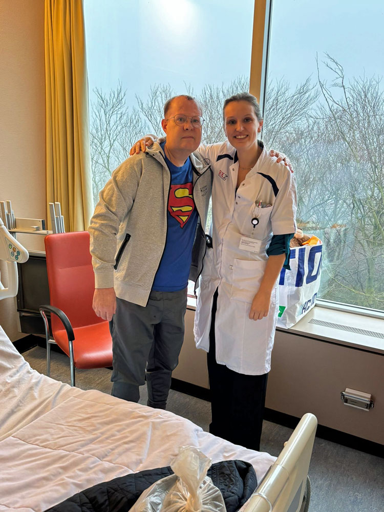 Frank de Reus mocht vandaag, na 9 dagen RKZ, naar het revalidatiecentrum Heliomare in Wijk aan Zee. Natuurlijk even afscheid nemen van de zeer betrokken neuroloog Dr. Boelens.
