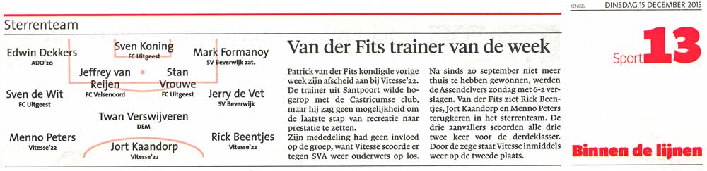 Toch wel leuk dat Twan Verswijveren in de korte tijd dat hij in het eerste voetbalelftal van DEM speelt, gelijk al in het weekteam van Kennemerland staat.