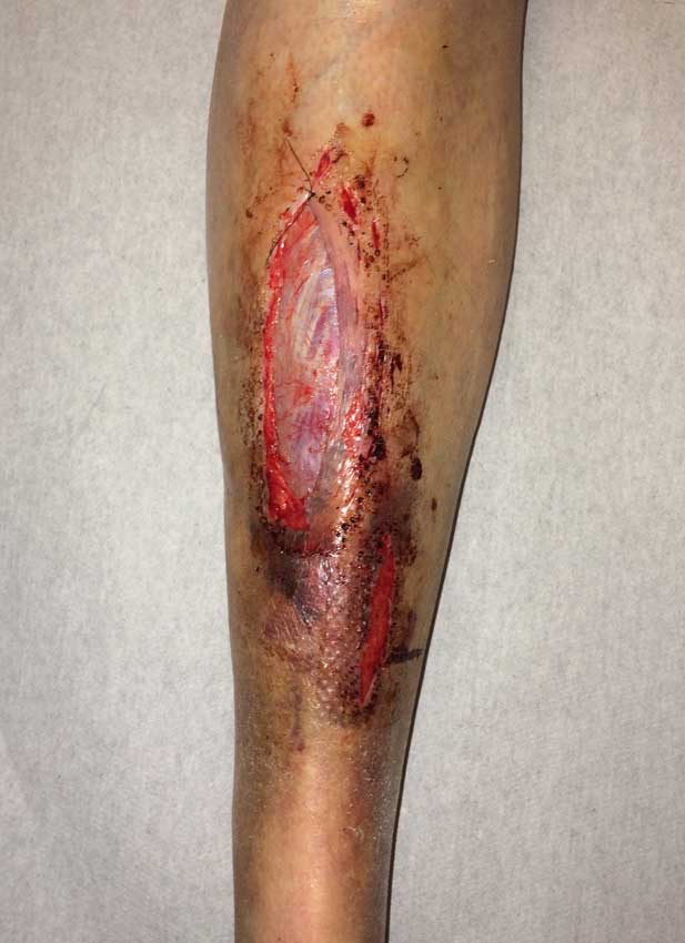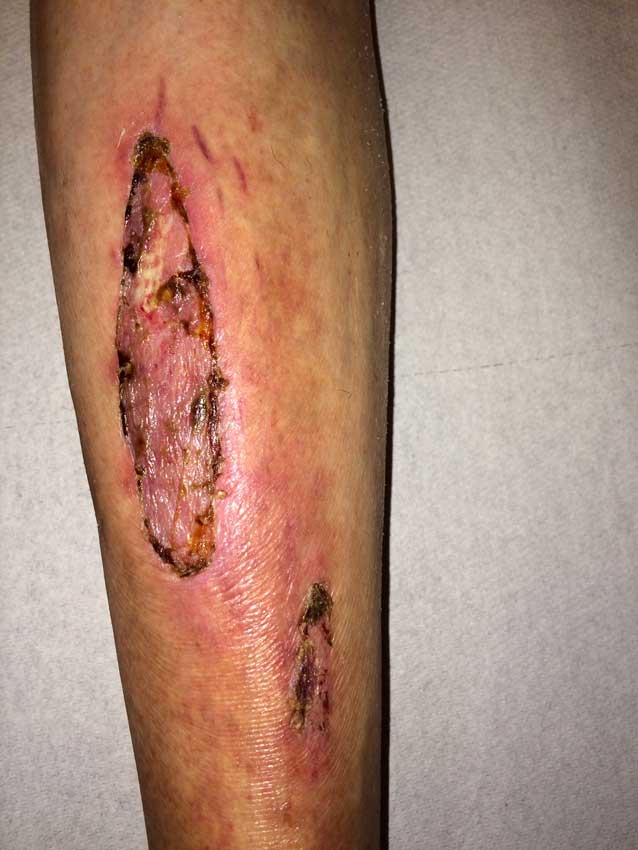 De huidtransplantatie op het scheenbeen bij Willy Lute heeft goed gepakt alleen de onderkant van de grote wond stond nog ietsje open maar dat komt wel goed zeiden zij, de specialisten waren tevreden. Nu moet de wond iedere dag verschoont en verzorgd worden (spoedcursus gehad) en dan volgende week maandag nieuwe controle in het ziekenhuis. Niet kijken als je er niet tegen kan maar zo zien de wonden er nu na de transplantatie uit.
