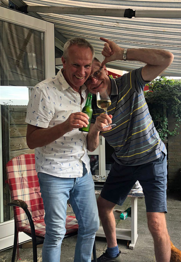 Afgelopen week heeft Jan Uiterwijk (links op de foto), de vader van Brenda Uiterwijk, een koninklijke onderscheiding ontvangen vanwege dat hij al bijna 25 jaar vrijwilliger is bij omroep Castricum.