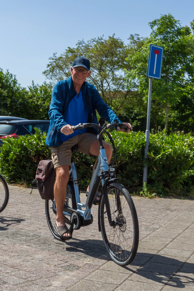 Ook vanmorgen weer een fietskeuring na het koffierondje waarbij zus Ria de Amslod van broer Toon uitvoerig ging testen.